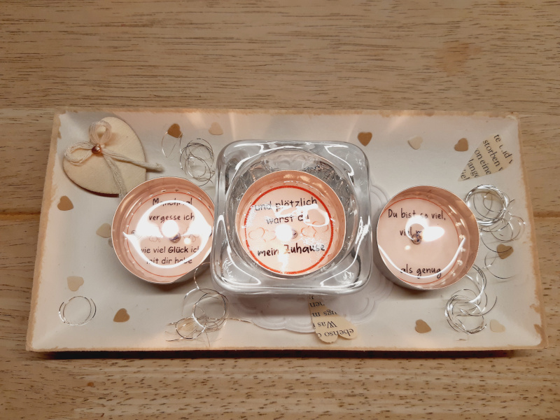 ein hübsches Trio Teelichter mit Sprüchen von der Liebe